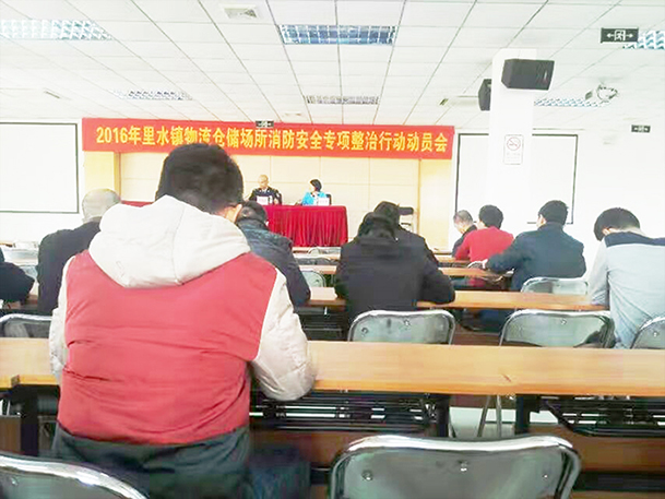 对于物流公司而言仓储场所的消防安全工作始终不容忽视。为了进一步落实企业消防安全主体责任,进一步推进我司仓储场所消防安全工作,切实提高企业消防安全水平,有效防范和遏制消防安全事故的发生。我司相关负责人参加了2016年里水镇物流仓储场所消防安全专项整治行动动员会。