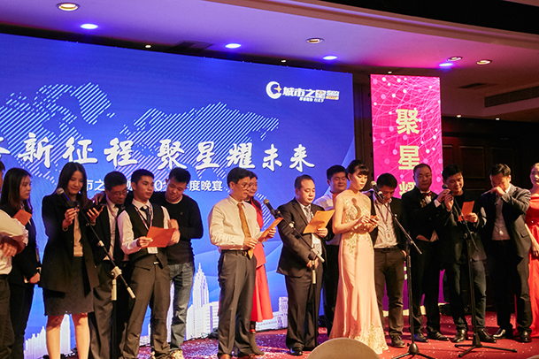 晚宴上,无论是舞蹈,魔术表演还是歌曲合唱,大家都是充满激情,活力无限,在“开启新征程,聚星耀未来”的舞台上,大家的才艺和个性得到了展现,让热情成为了城市之星人追逐梦想的动力。同时,为了激励大家,晚宴特别颁发了100万大客户开发信用奖。城市之星的“大家长”金健生董事长与大家倾情合唱歌曲《明天会更好》。黄总为大家分享了创业道路上的艰辛和收获,让大家受益匪浅,全场响起经久不息的掌声!晚宴中,金董、黄总一一为大家敬酒,这杯酒是感谢的酒,感谢大家多年来的辛劳付出、鼎力支持;这杯酒是喜庆的酒,庆祝公司今天的成功,分享收获的喜悦;这杯酒是祝福的酒,祝福大家在新的一年身体健康,家庭幸福,万事如意!