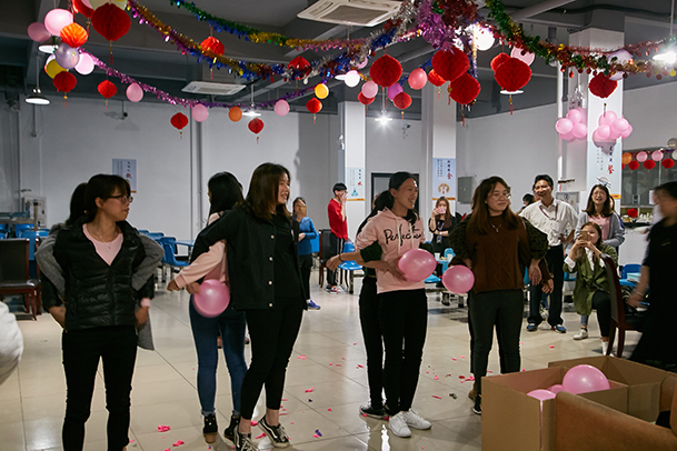 本着对活动的重视,事前做了全面的布置,红红的灯笼,五颜六色的气球、彩带高高挂起,整个活动现场节日气氛浓郁,喜气洋洋。活动伊始,多样化节目表演、灯谜竞猜、互动游戏等热闹环节。在主持人的带领下,各个活动环节顺利进行,大家欢声笑语,其乐融融,感受着公司这个大家庭浓浓的爱!
