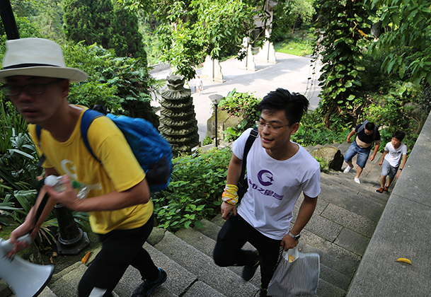 7月1日上午,晴空万里,阳光明媚,虽然天气热,但伙伴们的热情不减,激情高昂,白云山就在我们这群“挑战者”的脚下。此次登山活动分为A、B两队,分别从白云山南门和西门从发,两队的目标是在指定点拍照,抢占最高点。