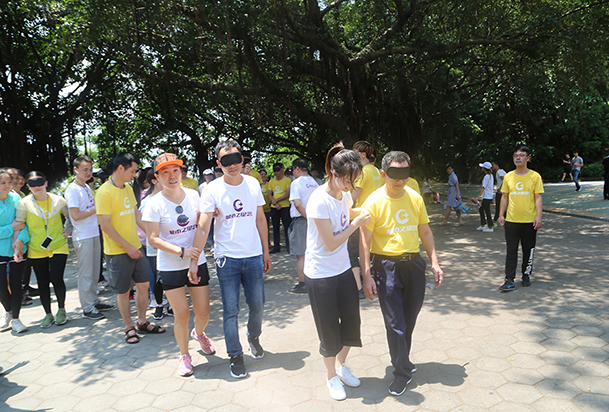征服白云山之后,我们顺势而下,来到了松涛广场,集体开展拓展活动,在金董的指挥带领下,大家分两组分别扮演“瞎子”和“哑巴”,大家凭借互相之间的信任顺利完成了拓展活动,并发表了自己深切的感受。无论是工作还是生活,只要我们互相帮助、互相信任、团结协作,就一定能够跨过坎坎坷坷,迎来美丽的人生。
