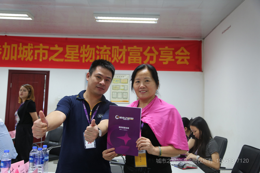 会上多名加盟商与城市之星物流成功牵手,本次招商大会取得圆满成功。