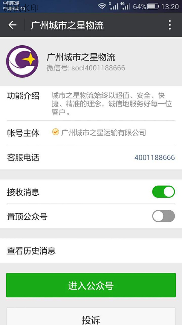 步骤1:手机关注“广州城市之星”公众号,进入公众号界面,如下图: