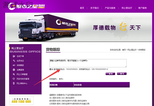 步骤2:进入官网后点击右上方的“网上营业厅”下面的“货物跟踪”进入查询页面,如下图: