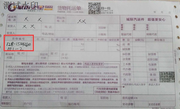 最后,在货物托运单上找到“货物编号”,输入到步骤2中箭头所指的地方即可。